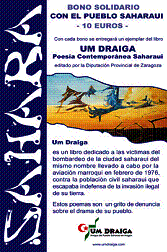 Um Draiga. Poesía saharaui contemporánea, editado por la Diputación Provincial de Zaragoza. Um Draiga es un libro dedicado a las víctimas del bombardeo de la ciudad sahraui del mismo nombre llevado a cabo por la aviación marroquí en febrero de 1976 contra la población civil saharaui que escapaba indefensa de la invasión ilegal de su tierra. Estos poemas son un grito de denuncia sobre el drama de su pueblo. Para solicitar dicho libro hay que entrar en contacto con: tienda@umdraiga.com . El precio del libro es de 10 euros y con el mismo se obtinene un bono de ayuda y solidaridad con el pueblo saharaui. Nota: el 30.10.07 el juez Baltasar Garzón se ha declarado competente para juzgar a los responsables marroquiés por la desaparición de más de quinientos saharauis.