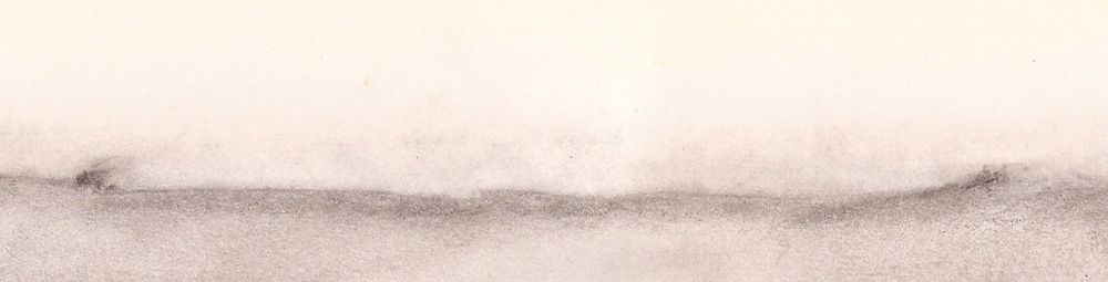 Nostalgia del horizonte fue dibujada durante todo un verano en pequeñas piezas de papel que más tarde conformarían un mínimo paisaje continuo sobre el que flotan los versos de Álvaro Muñoz Robledano. El largo poema emerge de los valles difuminados por los dedos, de las nubes bajas y los arbustos maltratados por el lápiz y la goma de borrar. Sus versos tienen la virtud de materializar los elementos dispersos bajo y sobre un horizonte que son nuestras vidas y todo lo que nos habita. Sus versos nos buscan y definen en el borde de lo que somos y lo que seremos, para al final de la línea infinita pedirnos que la borremos y por fin seamos libres.